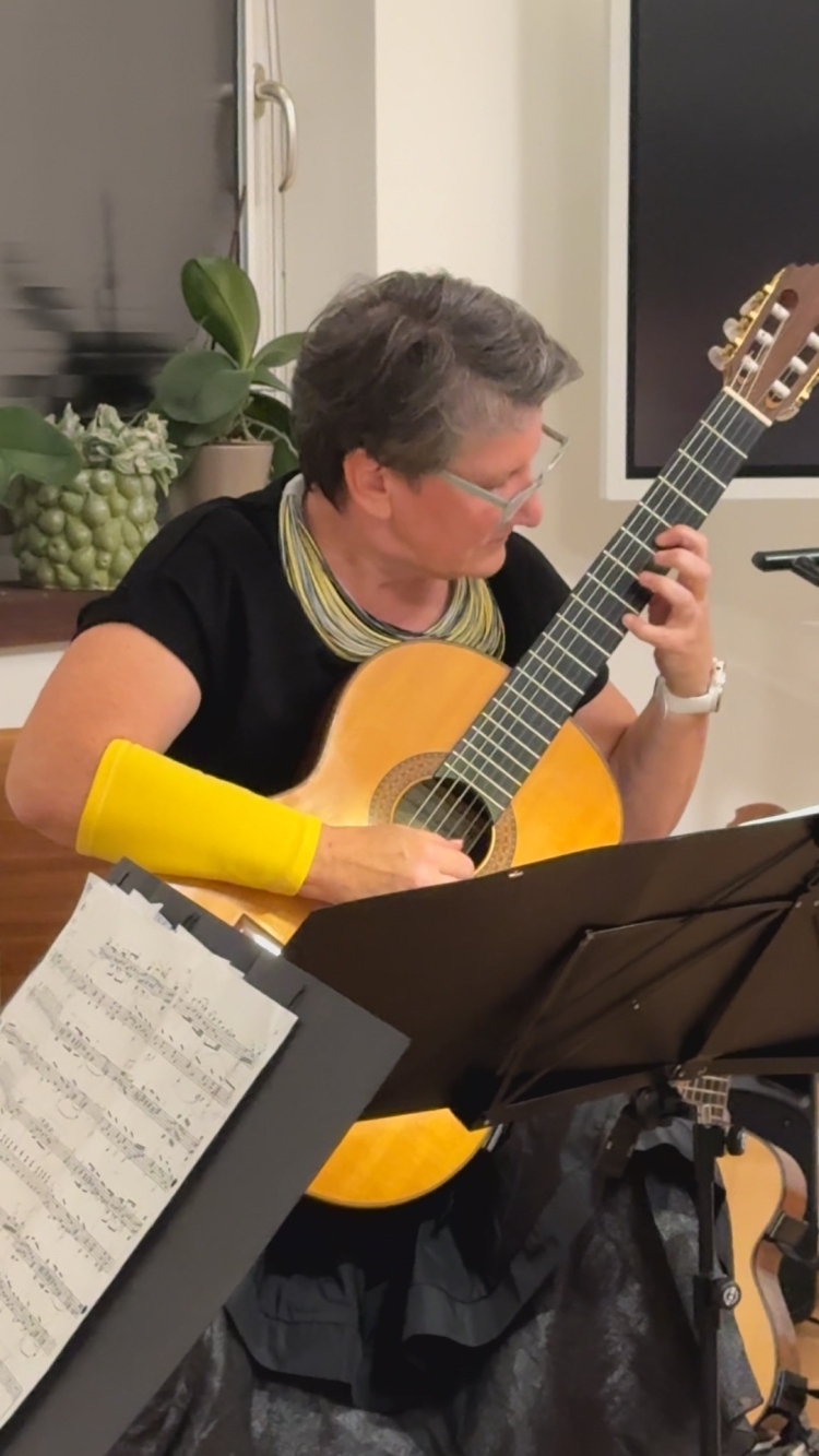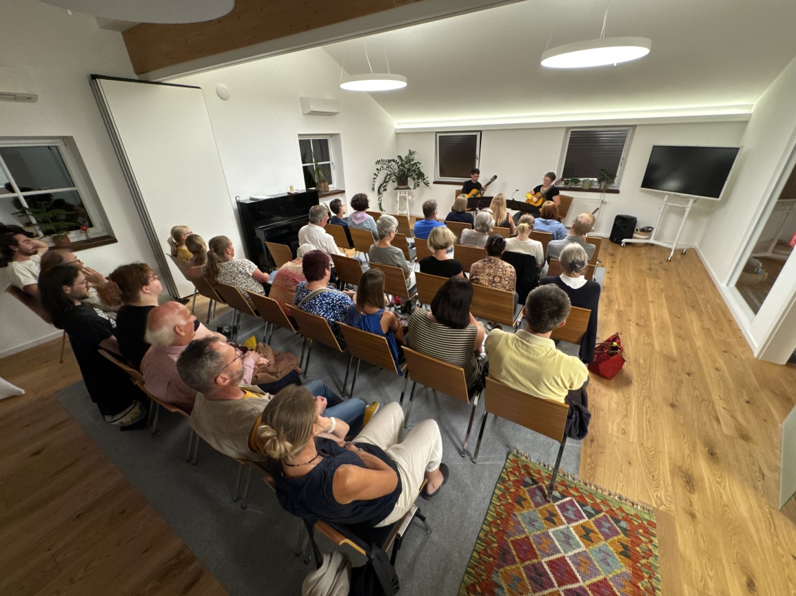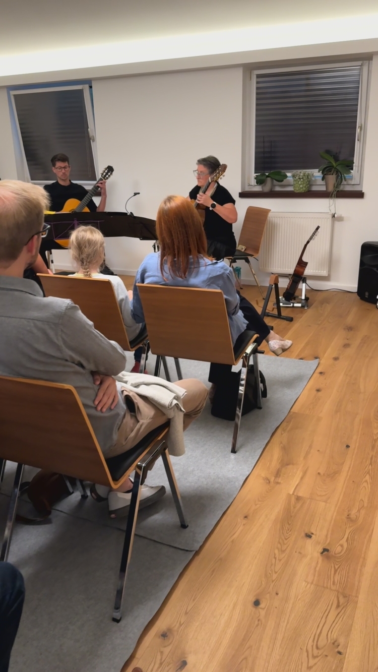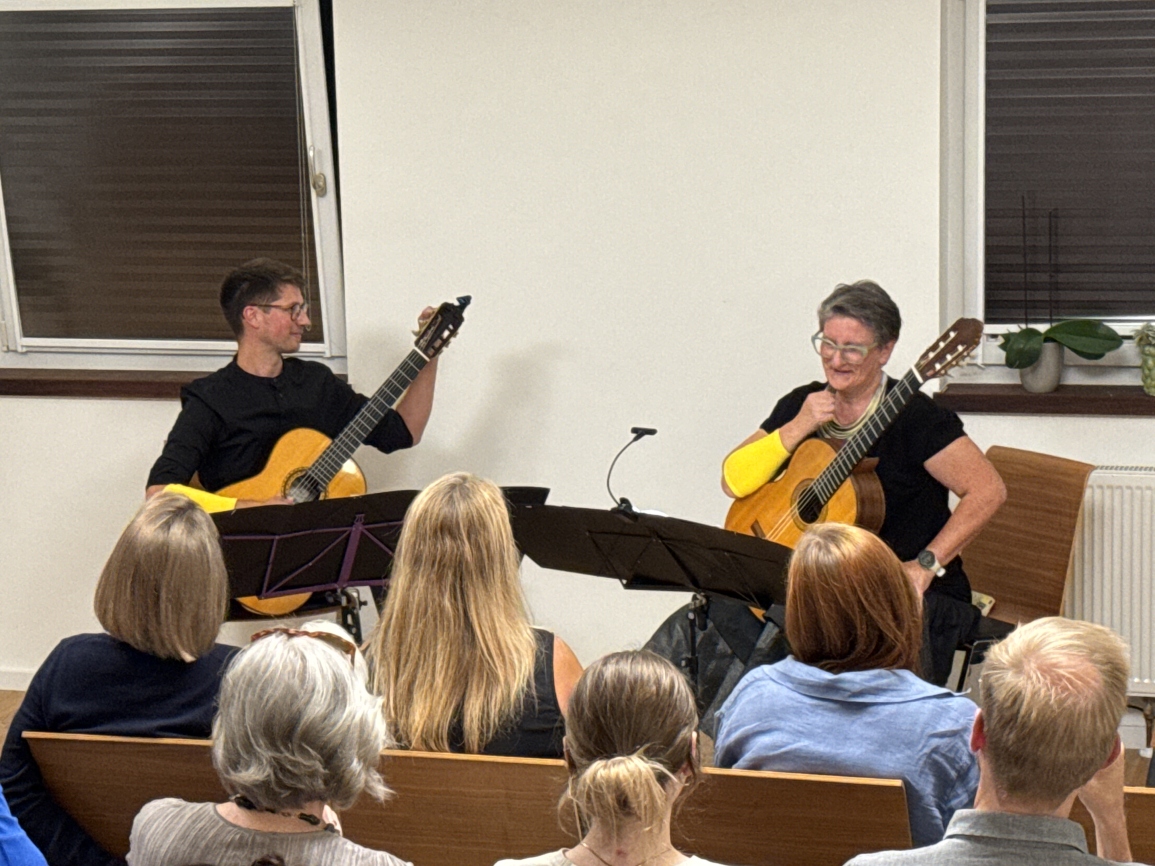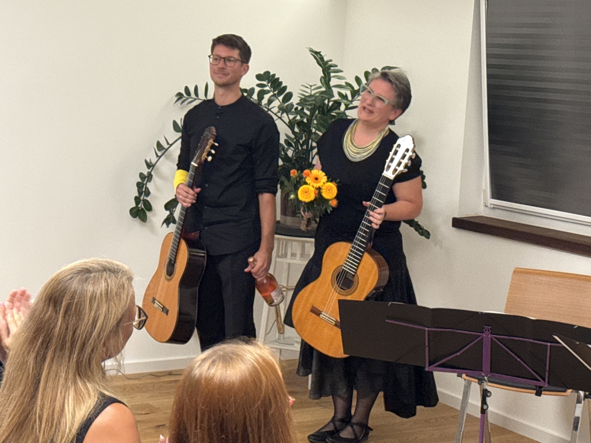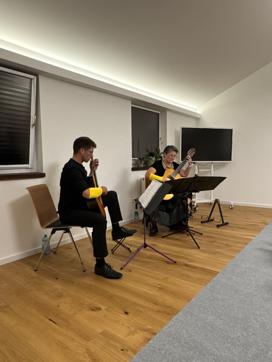 Auf zwei klassischen Gitarren und auch einer sonst selten gehörten Oktavgitarre, zeigen die beiden Künstler*innen die ganze Bandbreite ihres Instrumentes. Mal virtuos, dann wieder lyrisch, die verschiedenen Stilrichtungen und Spieltechniken machen den Abend zu einem besonderen Hörerlebnis.